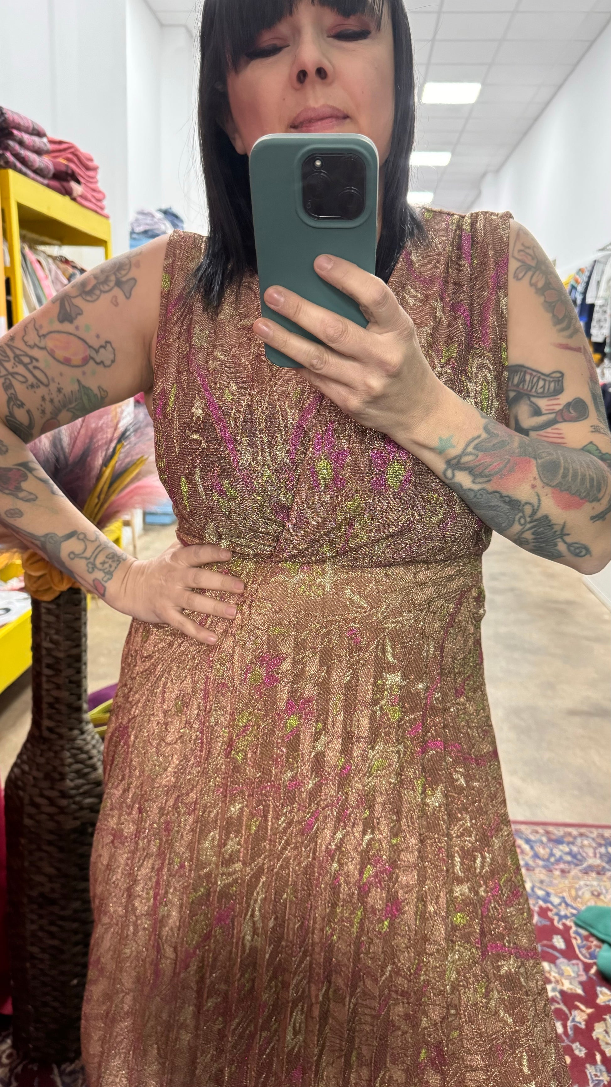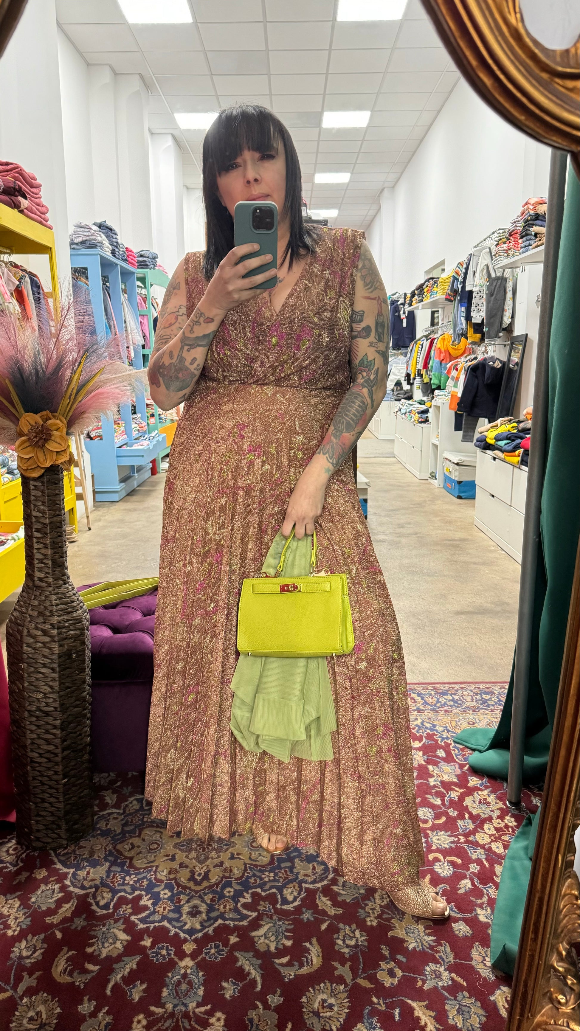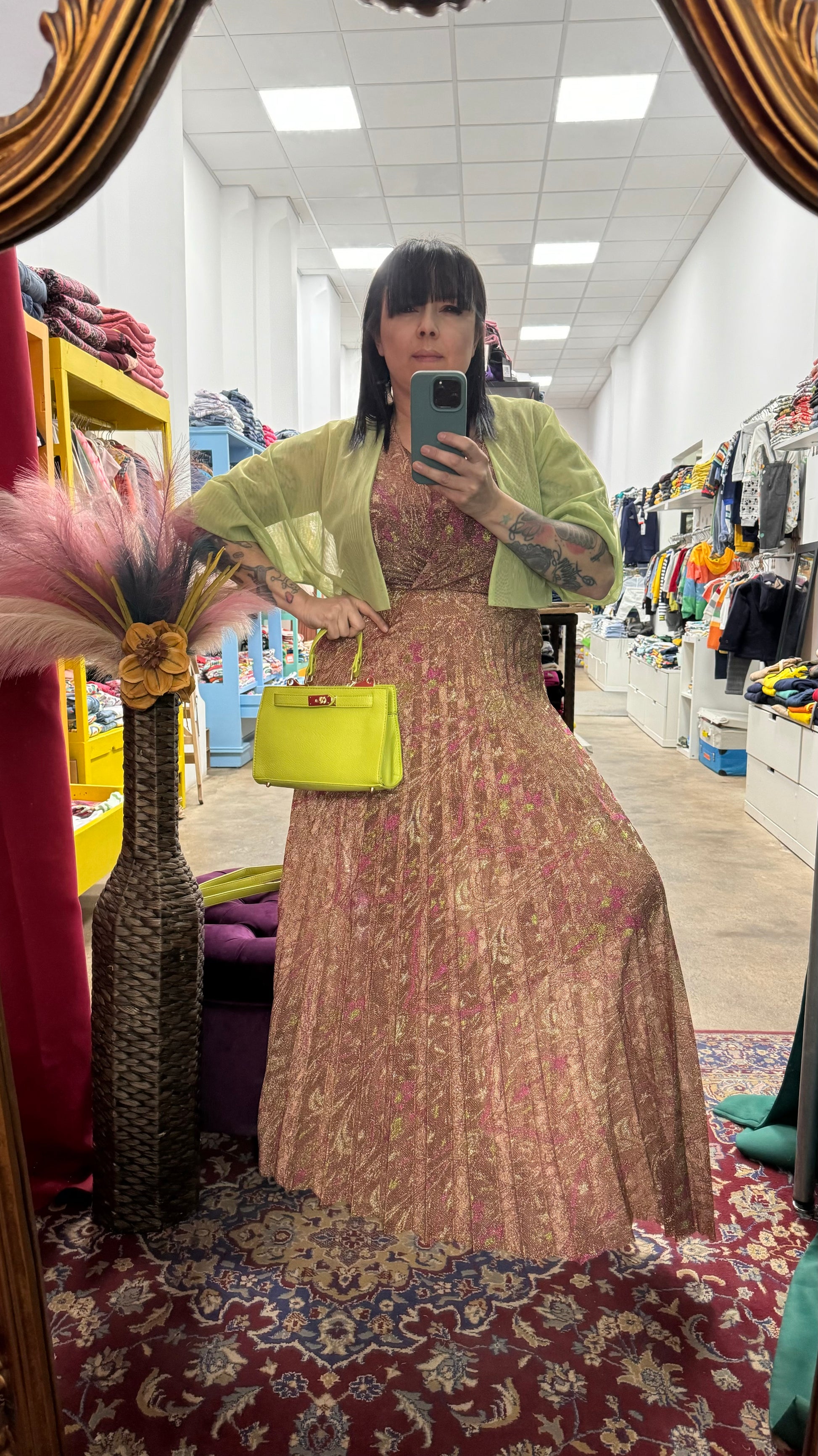 Abito cerimonia in lured . Vestibilita’ regolare e confortevole grazie all’elastico sotto il seno .