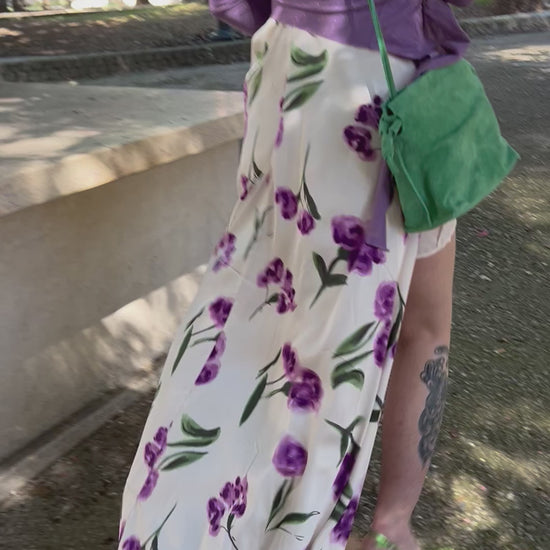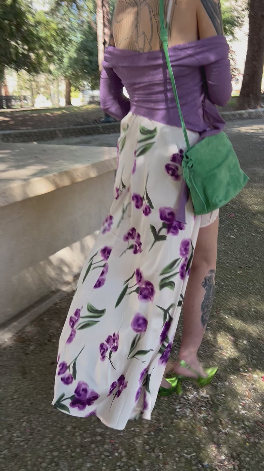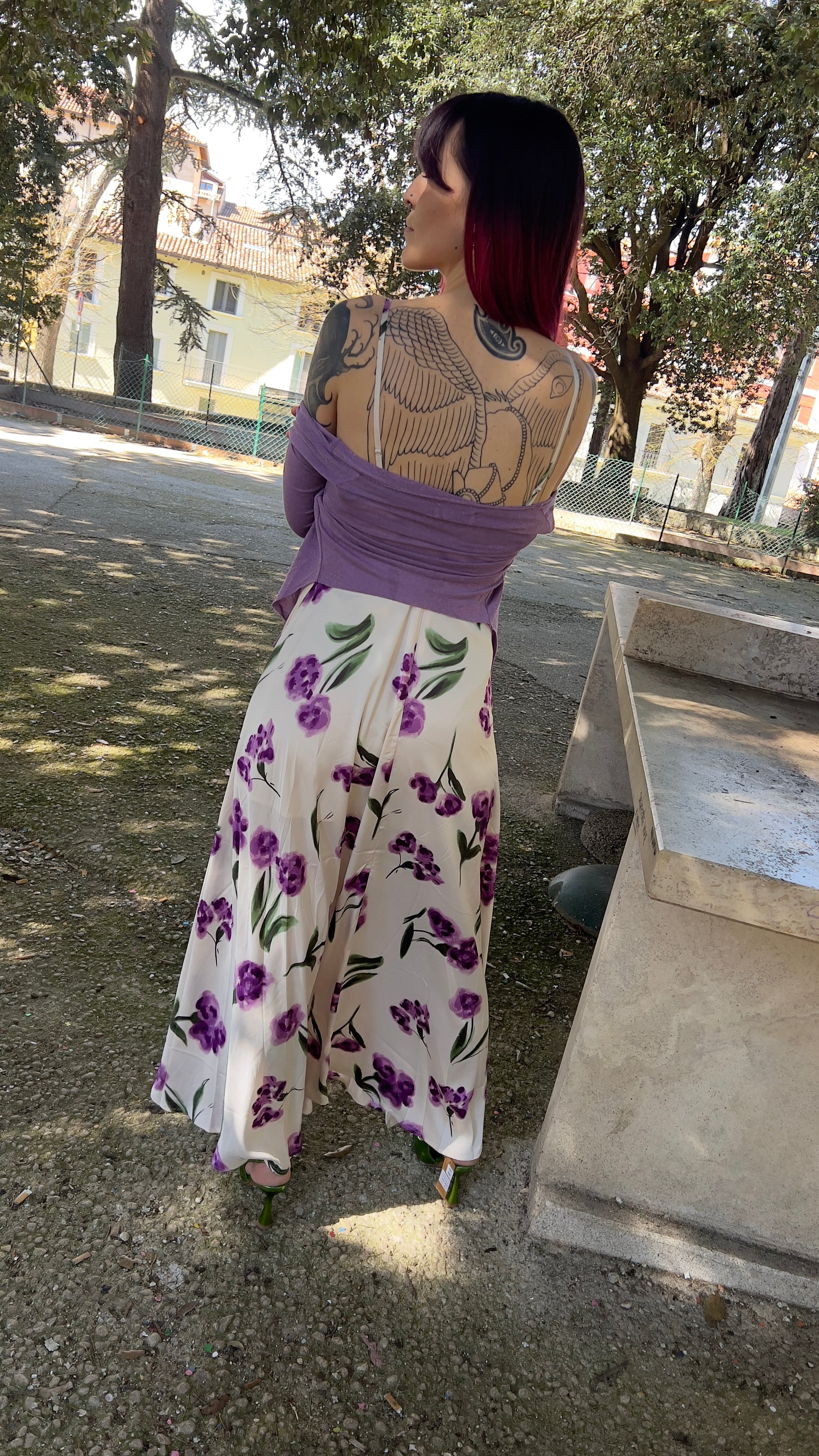 Abito fiori con sottoveste e spacco laterale
