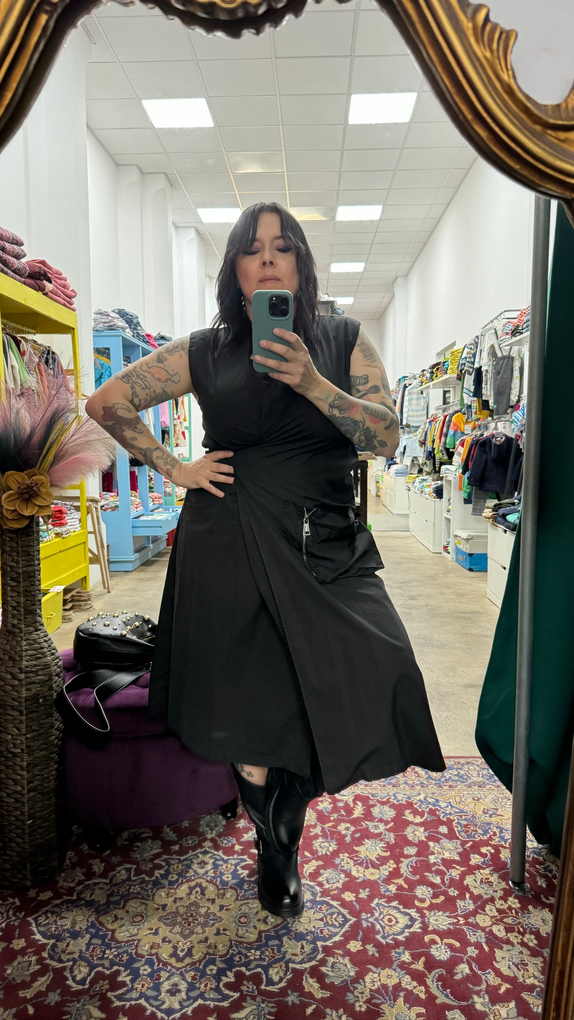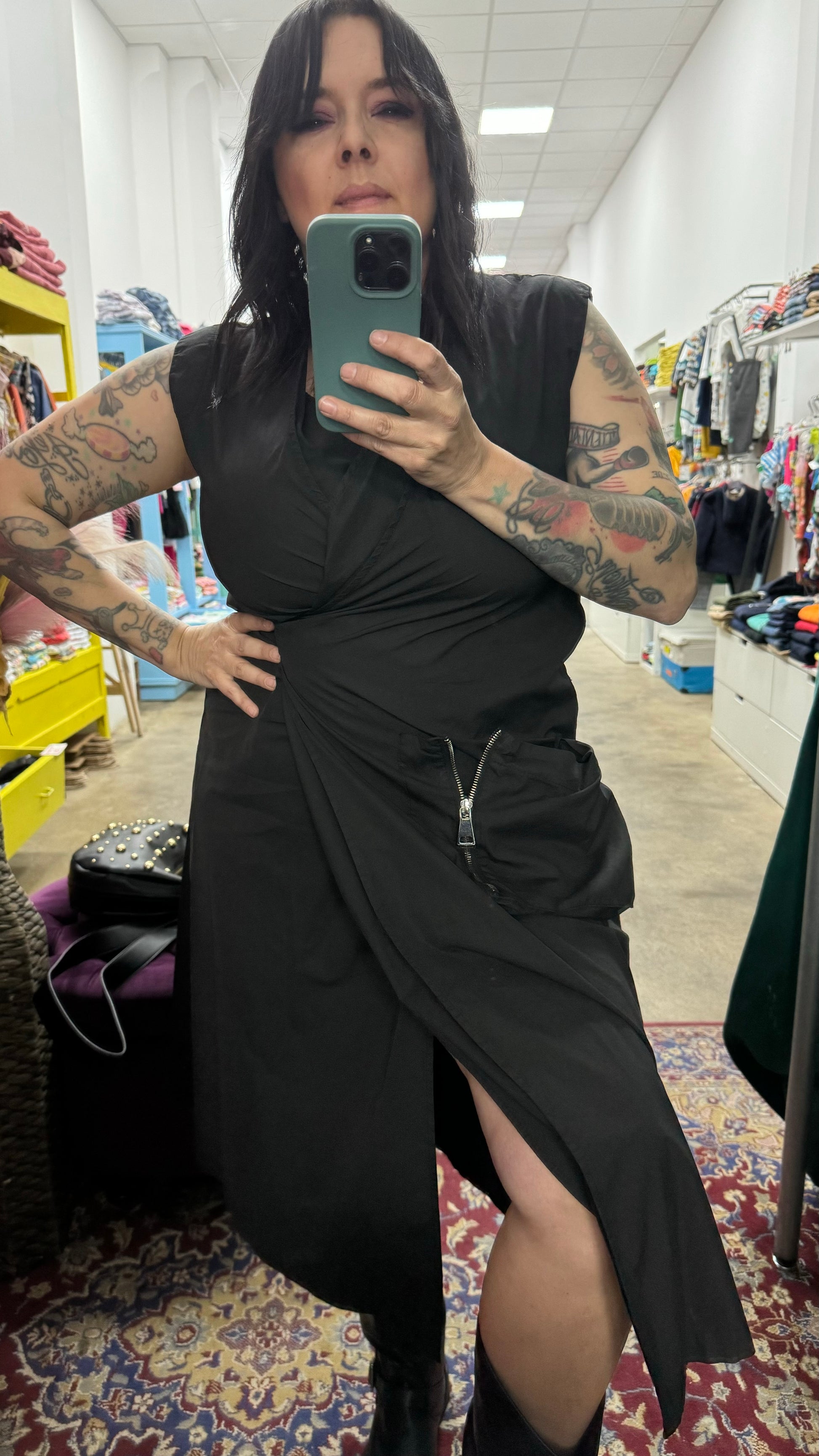 Abito 100% cotone con tasca e chiusura a portafoglio