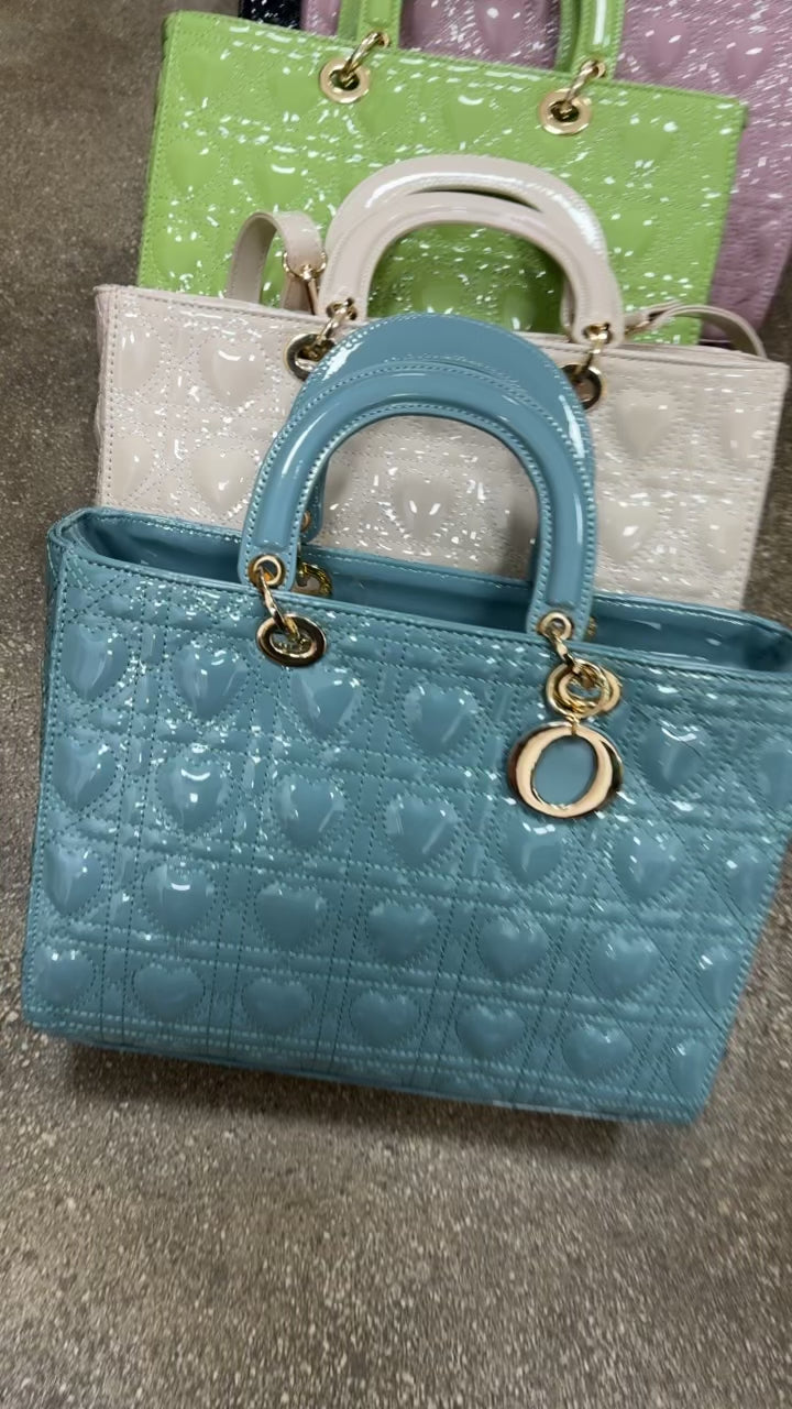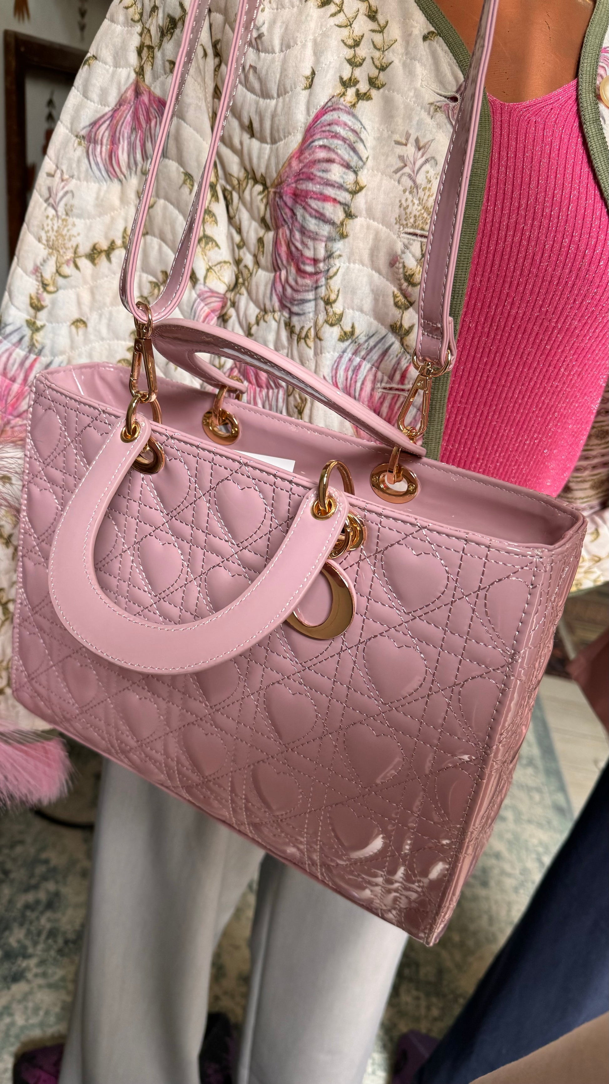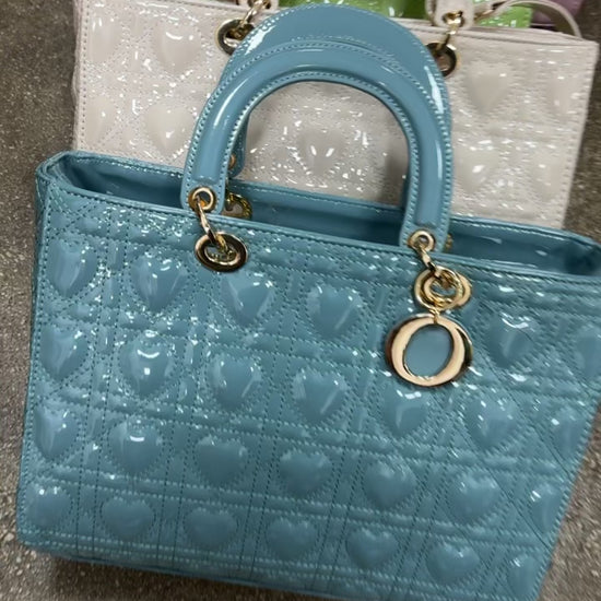 Borsa ecopelle lucida con cuori . Tracolla inclusa