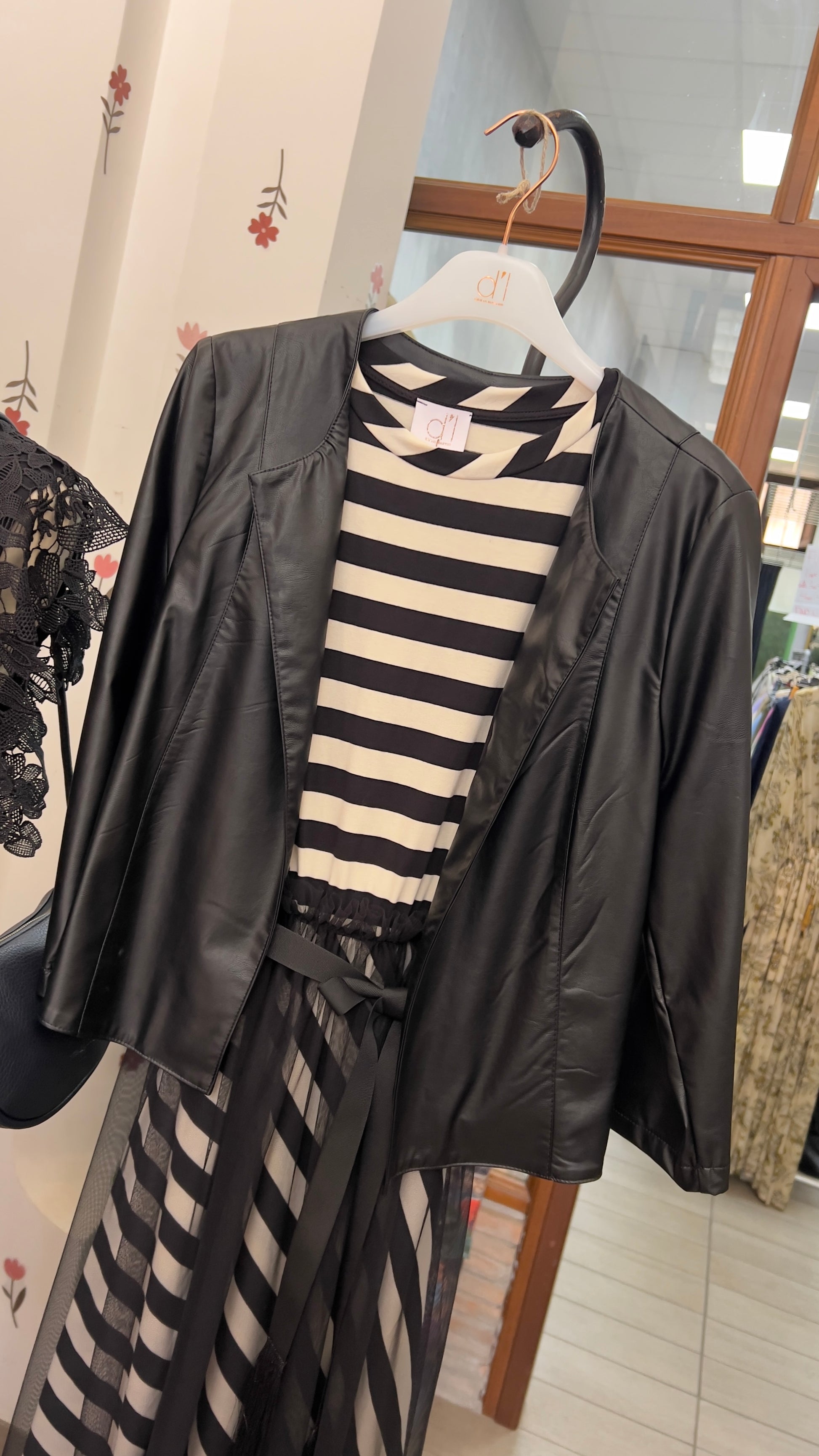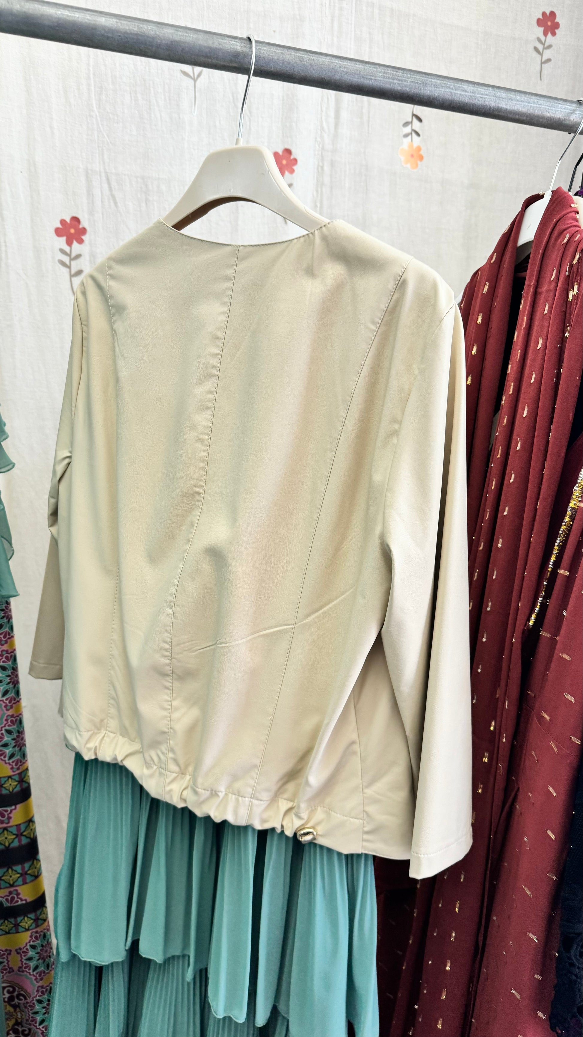 Giacca ecopelle con maniche 3/4 e coulisse sul retro