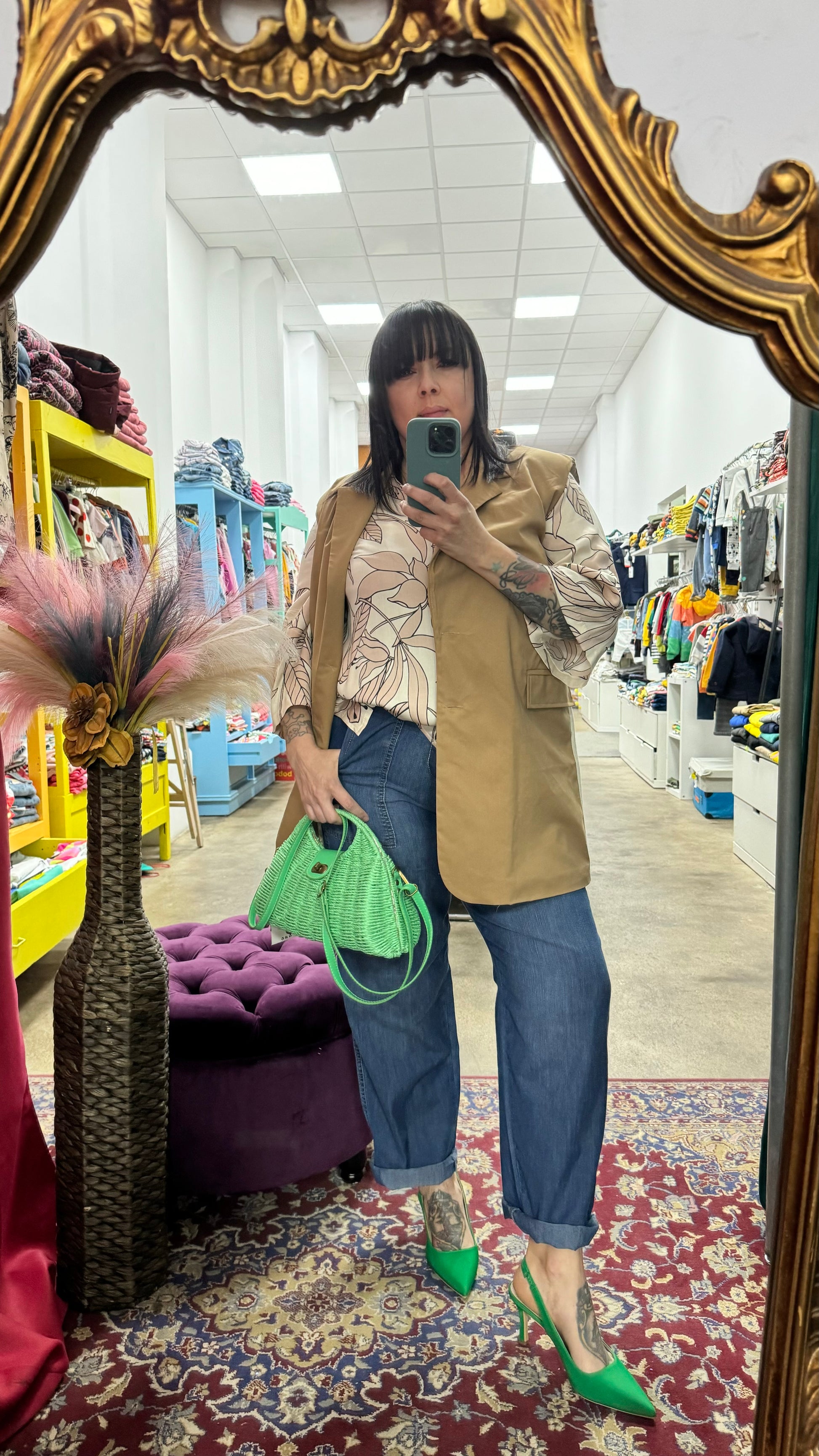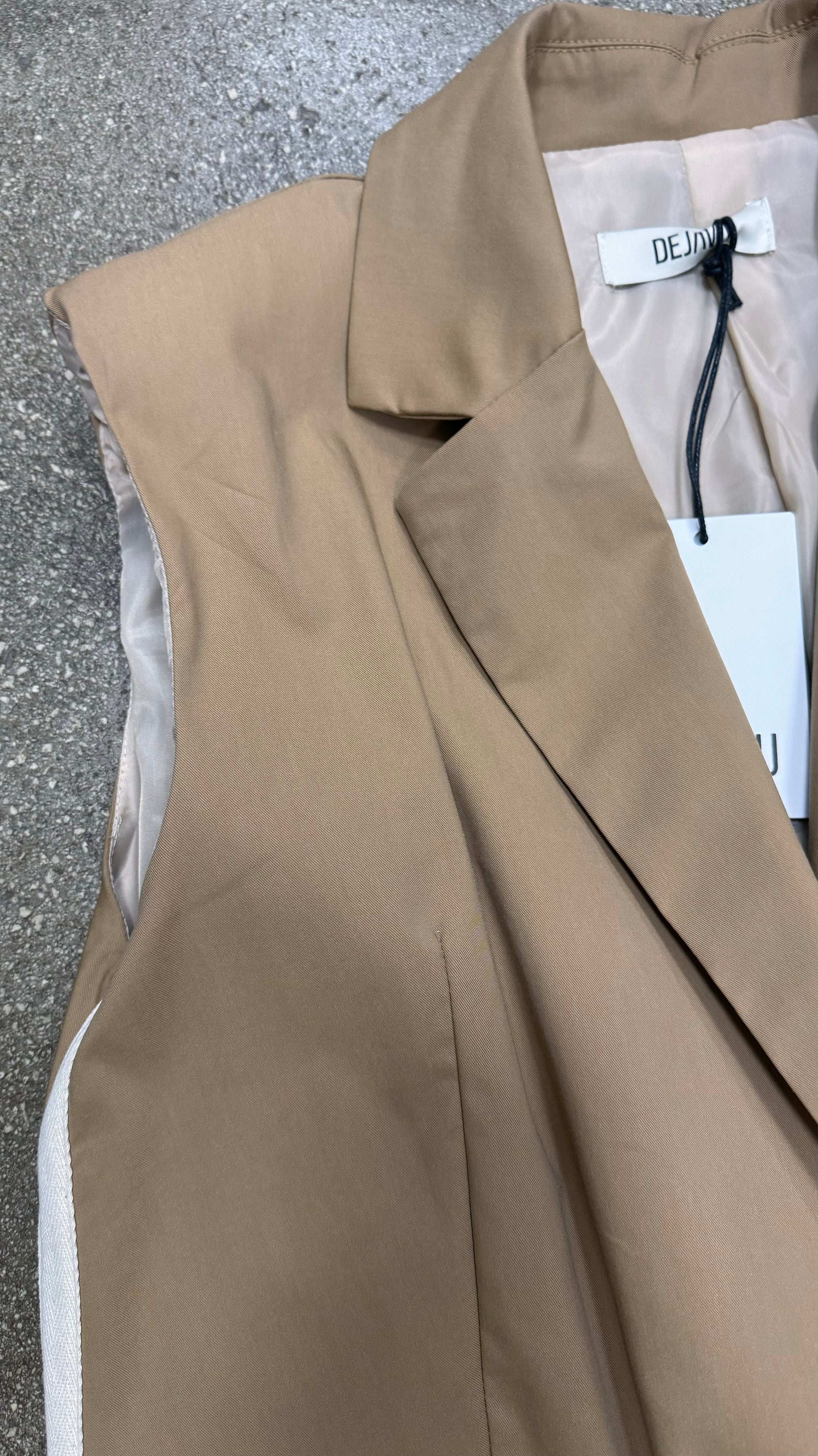 Gilet con banda laterale e spalline .Vestibilita’ oversize