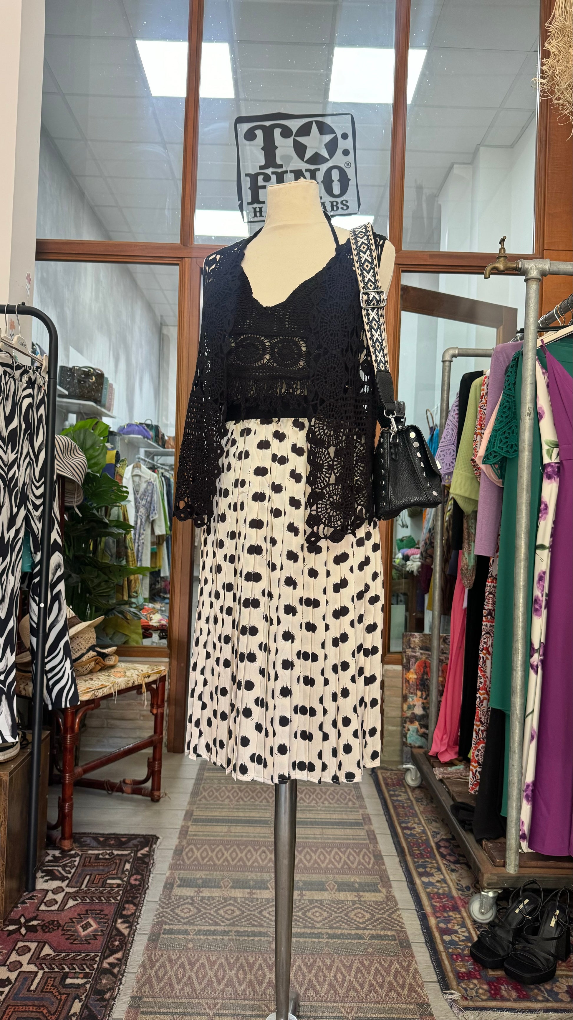 Gonna plisse’ a pois con elastico in vita