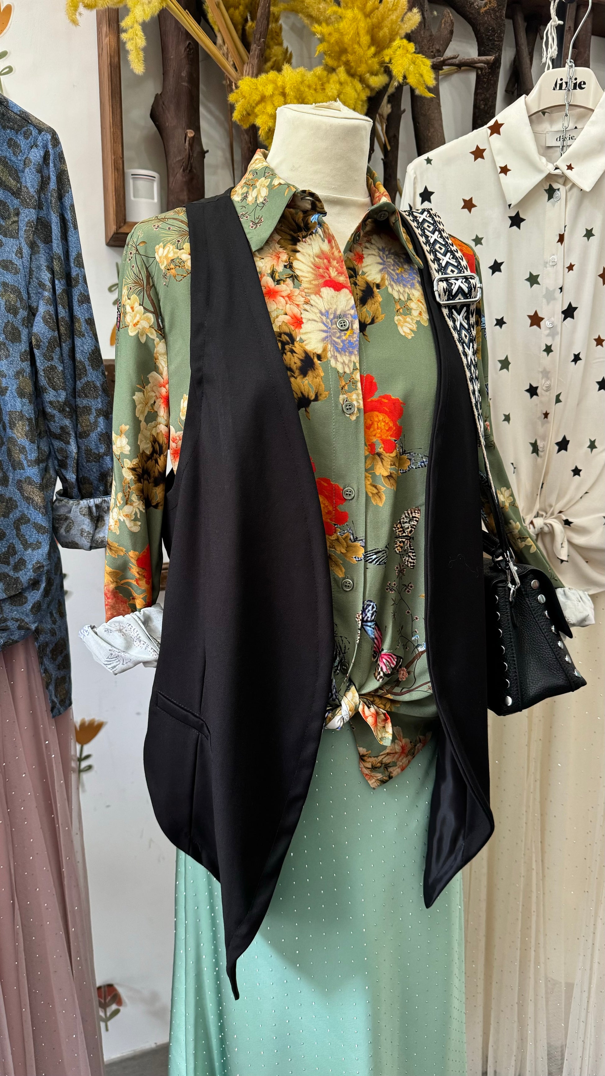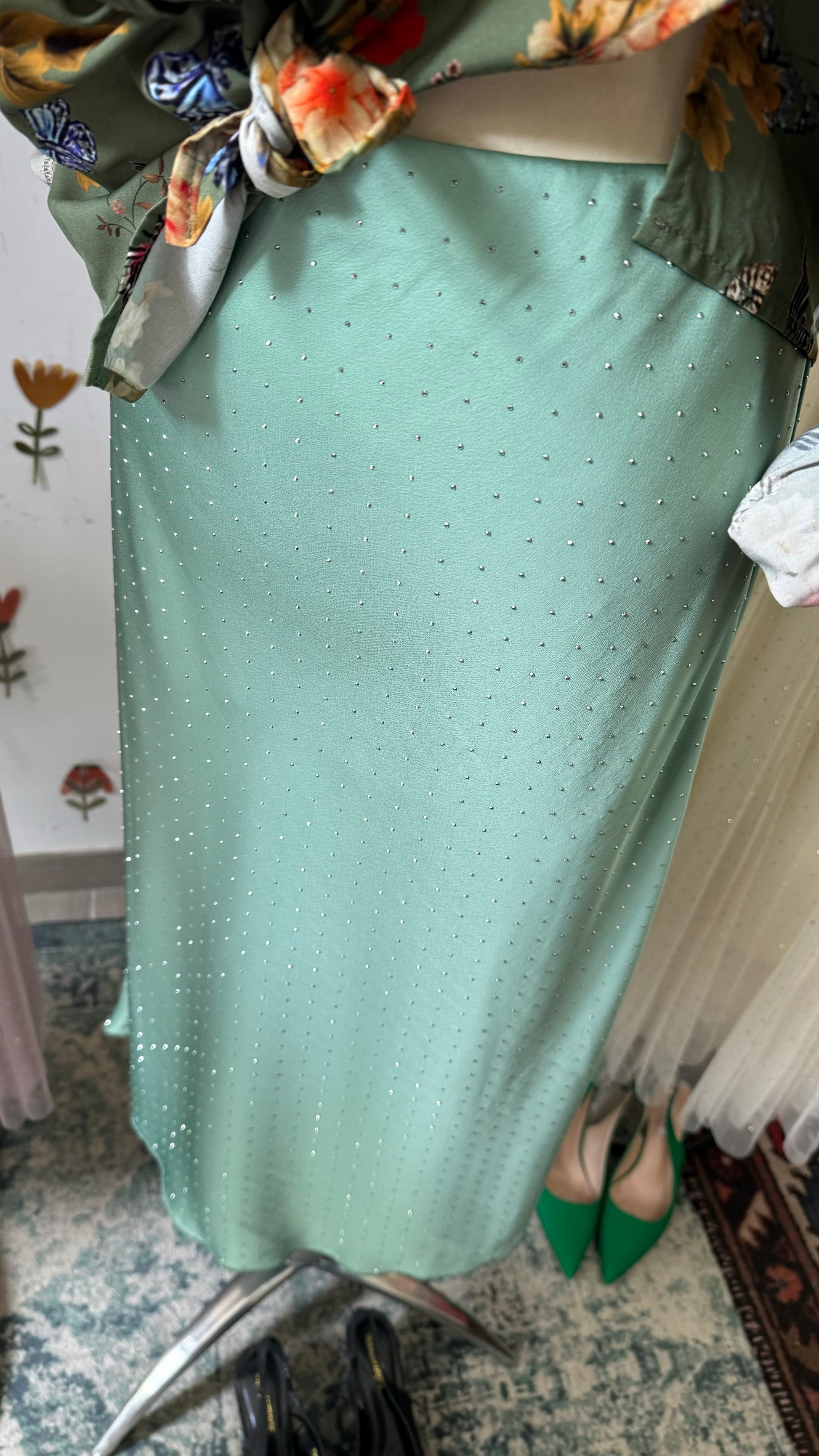 Gonna in satin con borchie