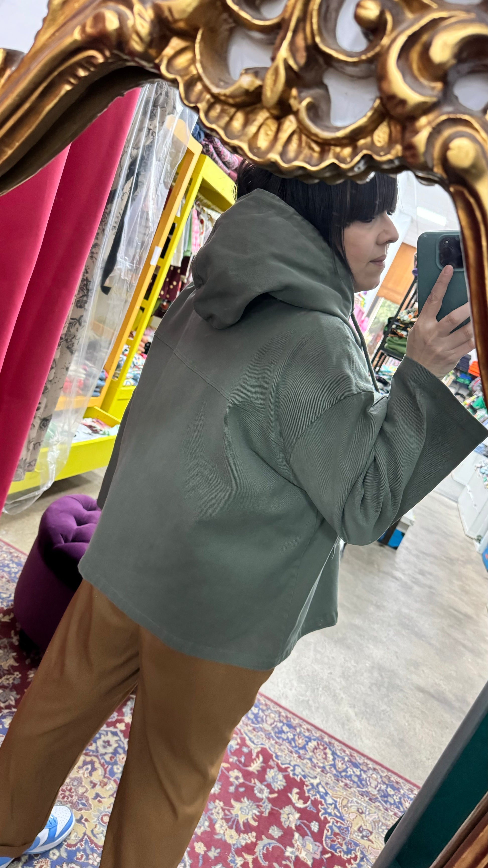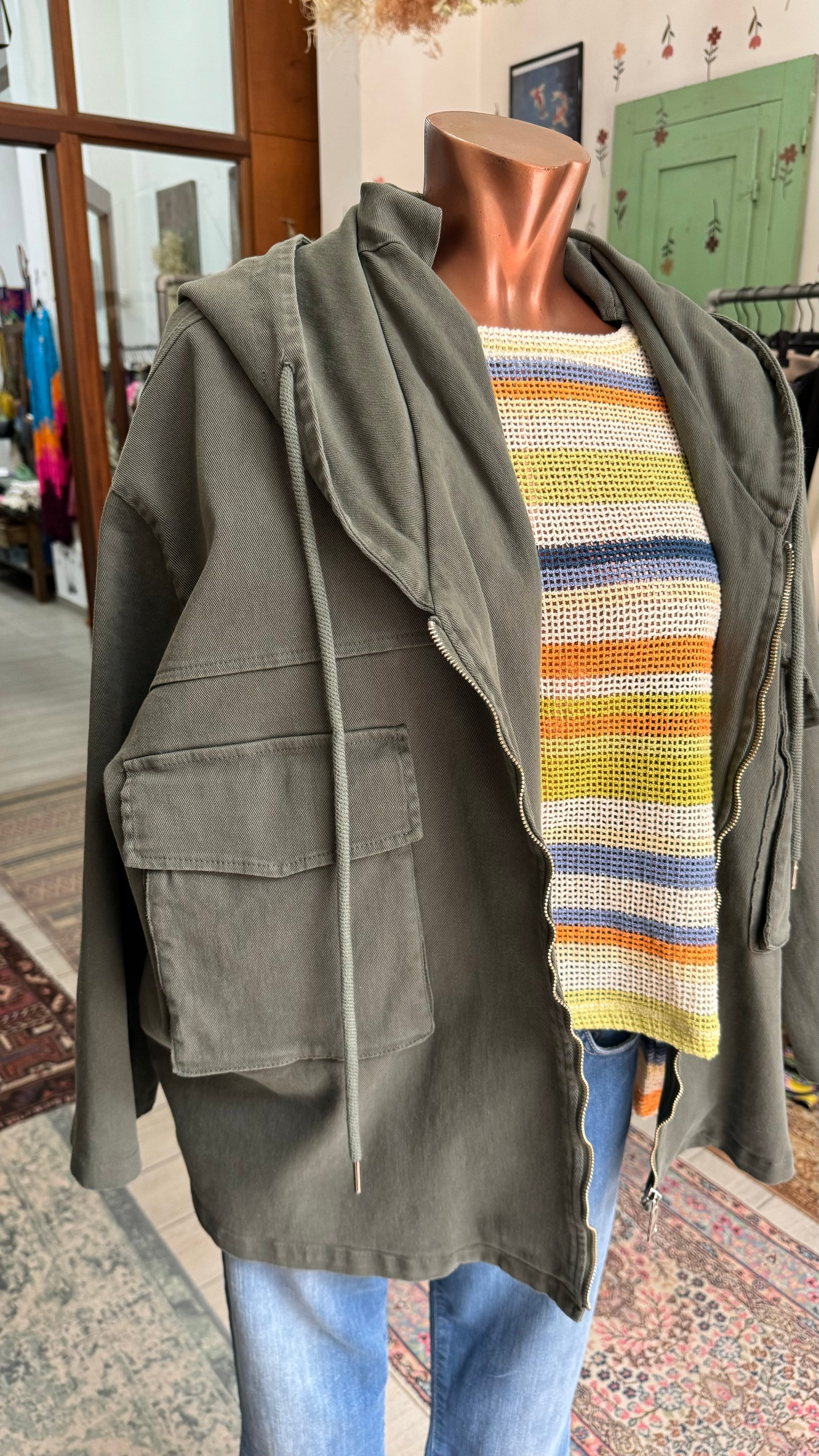 Giacca militare con zip e cappuccio . Vestibilita oversize