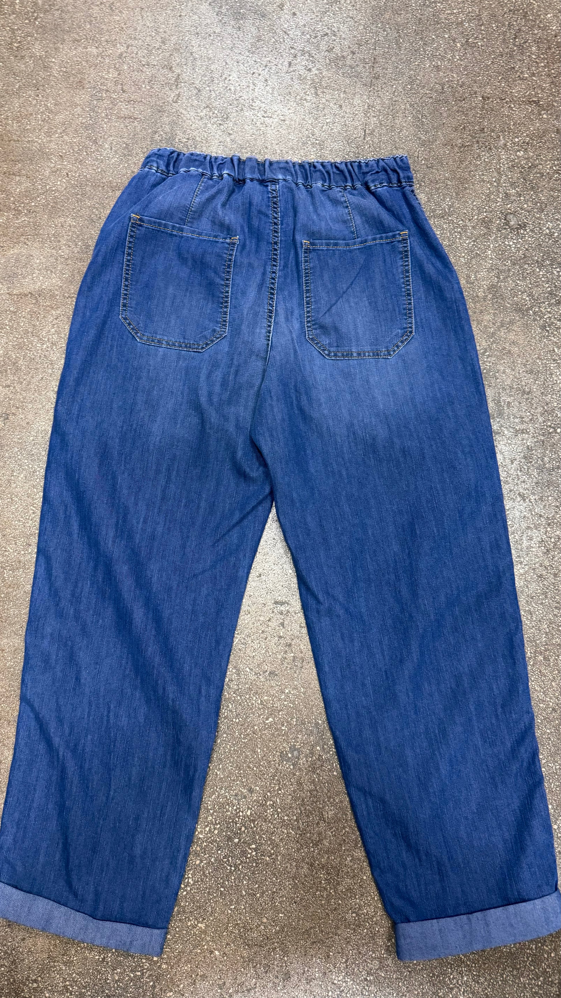 Jeans con tasche applicate , vestibilita morbida, elastico in vita . 100% cotone