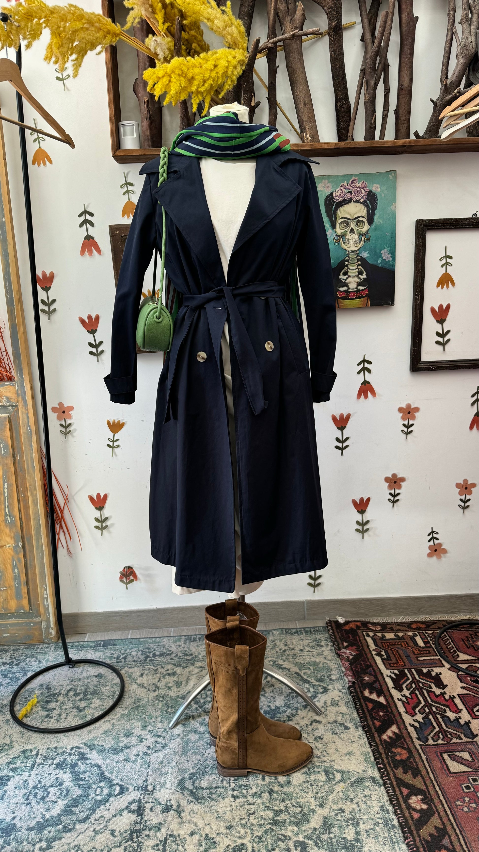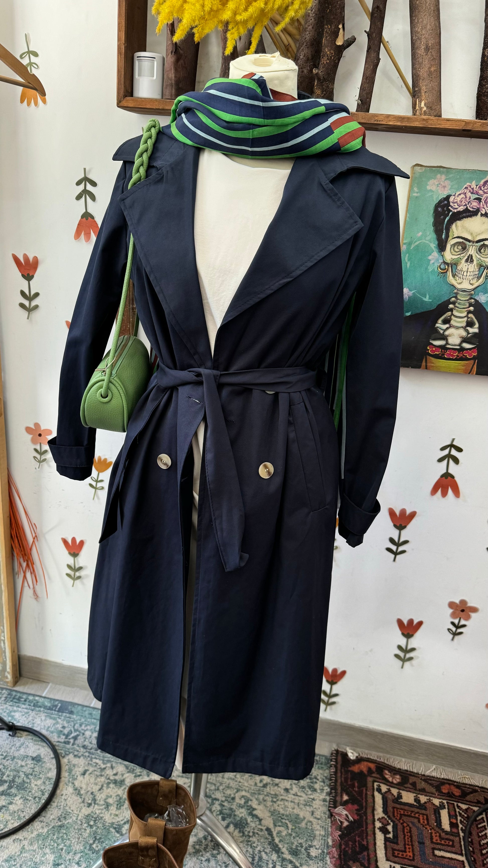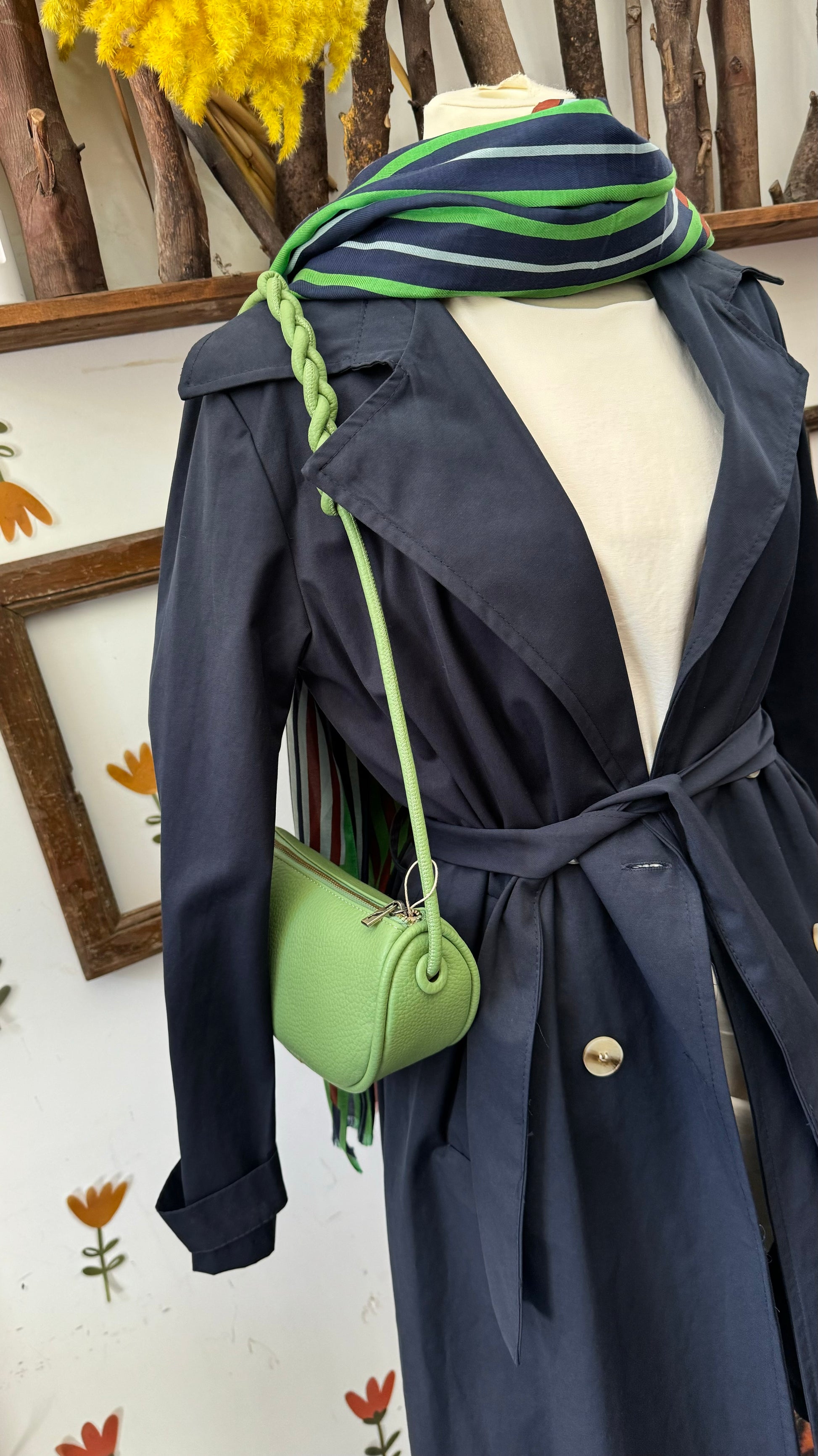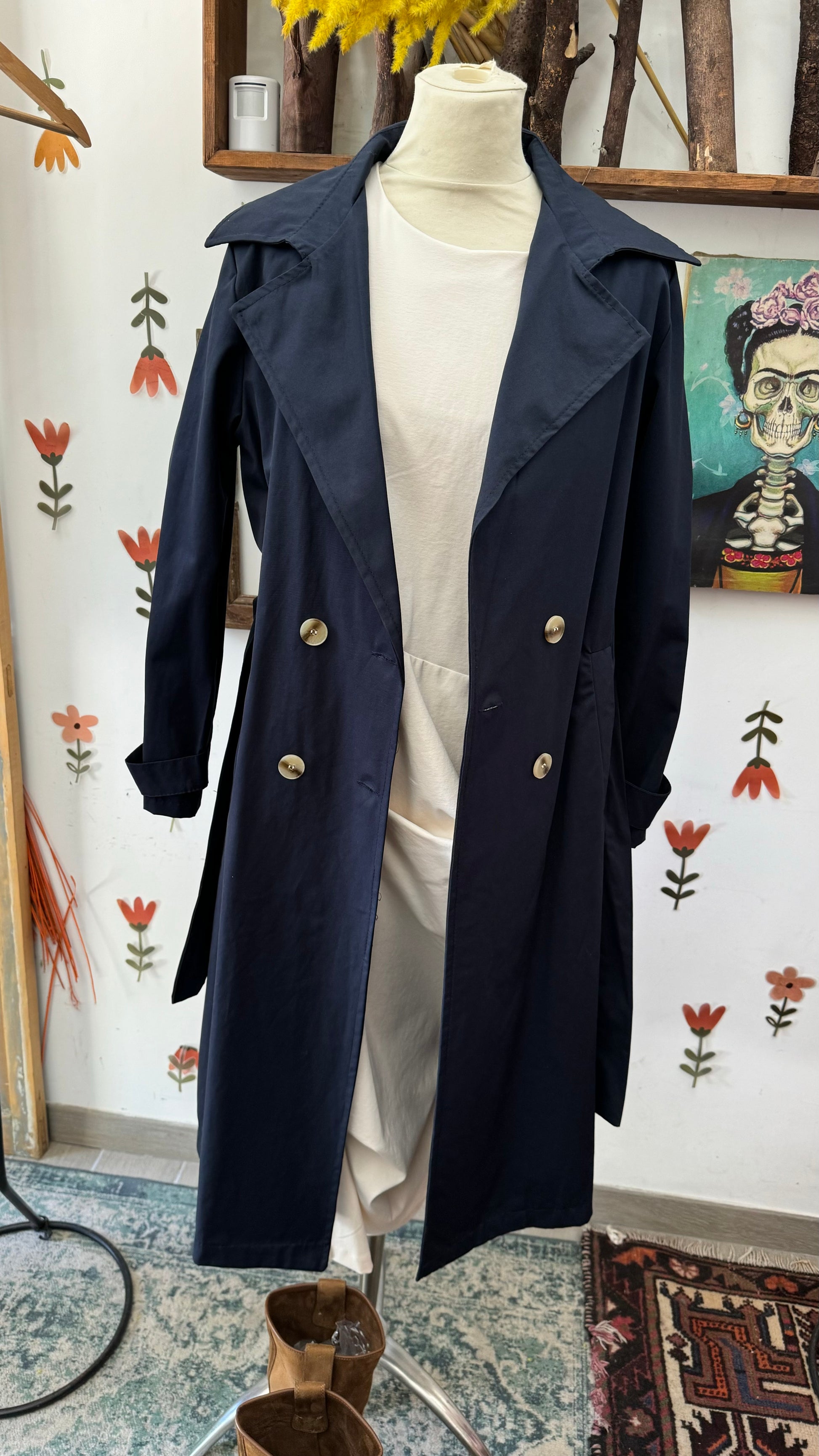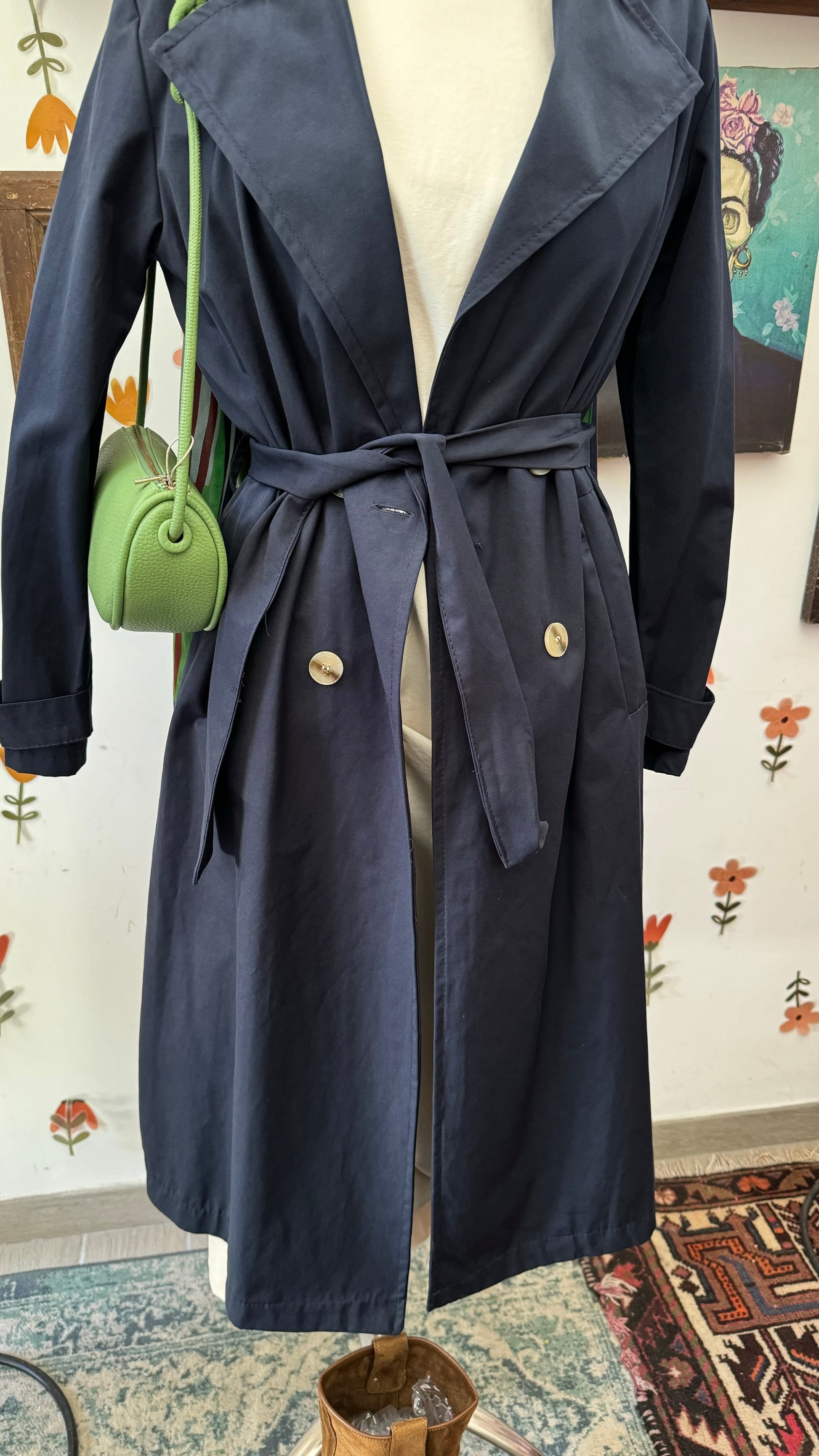 Trench blu con due bottoni
